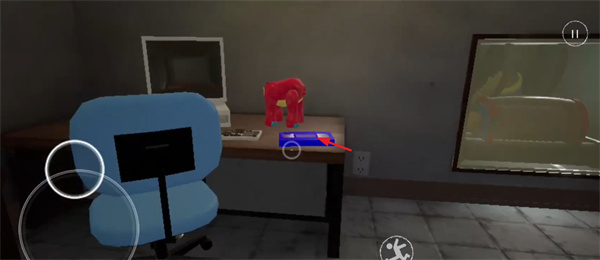 3、进入内部后,直接拿起桌子上的蓝色磁带,具体位置可参照图示。