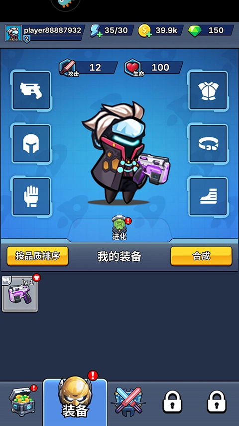 最后,在装备界面可以对我们主人公进行养成。