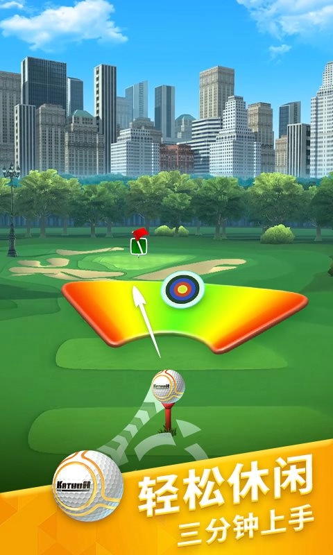 决战高尔夫配备了详尽的新手教程与辅助系统,玩家只需依照系统指引,拖动并释放画面里的高尔夫球,即可完成击球动作,最终将球打进洞中。