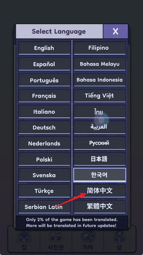 3、设置完成,游戏界面即切换为中文。