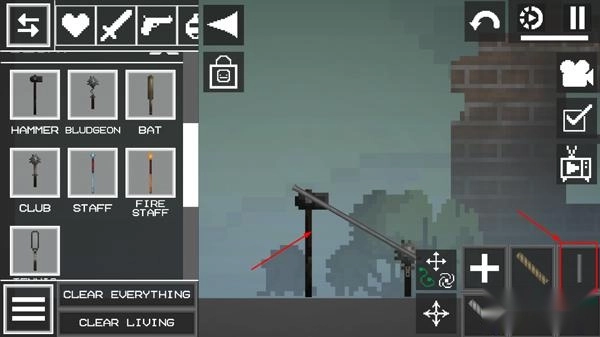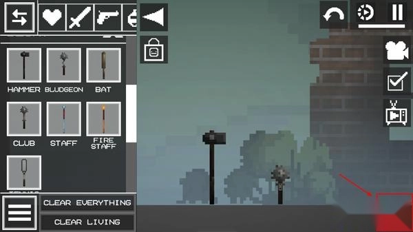 2、进入游戏后,界面如图片所示,点击左上角的菜单按钮,在地面上添加两个物品;