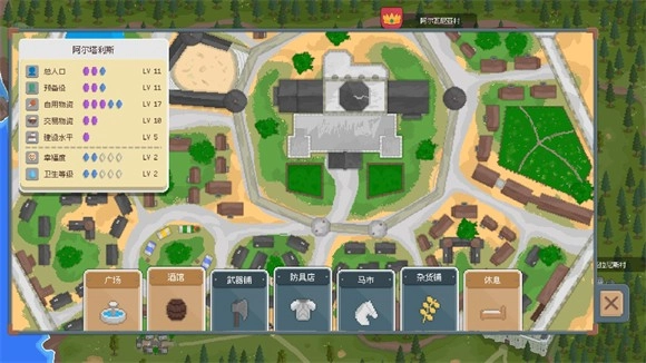4、进入城镇后,点击广场可招募士兵,酒馆能获取各类情报,武器铺支持武器的购买与出售,防具店提供防具的买卖服务,马市可购置马匹,杂货铺可进行食物等物品的购销,点击休闲选项则能恢复部队状态。
