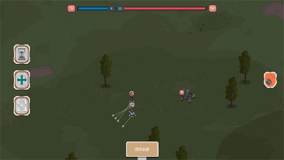 6、进入战斗状态后,角色会自动对敌人发起攻击,你也可以通过点击左侧区域来框选不同的士兵,指挥他们参与战斗。