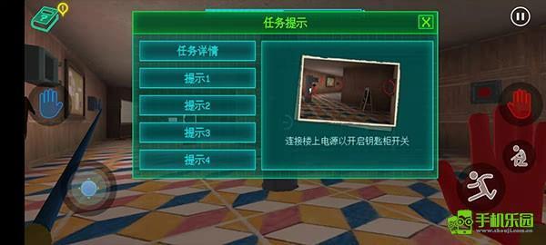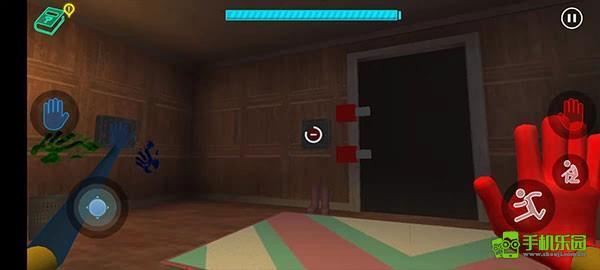 8、玩家打开卧室门后,往左边看会发现一个红色手印,同样只需将手套对准对应的区域操作即可。