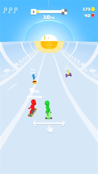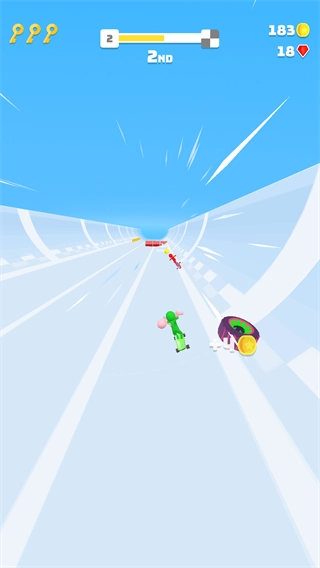 2、你需要通过向左或向右滑动以引导角色冲向终点。