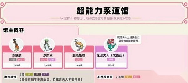 焙固镇超能属性道馆馆主莉普,堪称游戏后期的强力馆主!她拥有四只高等级的宝可梦,单是沙奈朵就足以给你造成巨大威胁!不过草系的“草猫”(如走路草进化型等)能够完美克制她的队伍,或者使用黑鲁加也能应对,但要注意:如果能通过太晶化切换到其他克制属性,就尽量避免使用恶系招式。