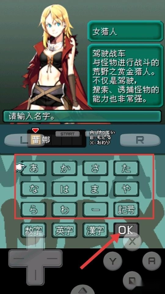 3、选定角色后,通过虚拟键盘输入名字,确认没有问题后点击【OK】按钮即可完成设定。