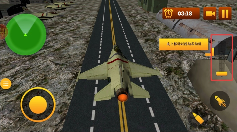 1、先轻触屏幕并向上滑动,以此成功激活战机的引擎系统,为后续的空战对抗提供动力支撑。引擎启动后,机身会出现轻微震动,同时还会有蓝色尾焰的特效作为提示。