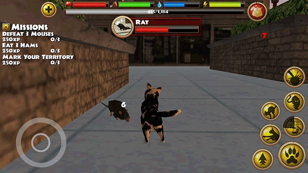 用你那如剃刀般锐利的爪子和强劲的咬合力去捕捉猎物,再与敌人展开战斗!要是惹出太多乱子,城市里的动物管理中心就会找上门,从你的猫群里抓走一只猫!