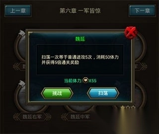 游戏每日会提供一次免费购买体力的机会,大家一定要合理地去利用。体力能够用来刷副本提升等级,也可以进攻敌国的城池来获取资源,建议大家在经验和资源之间找到一个平衡点。当资源充足的时候就多刷一些经验,资源短缺的时候就转而打资源或者完成任务。要注意保留体力丹,在系统开启双倍经验的时段集中使用,这对于快速升级来说是非常关键的。