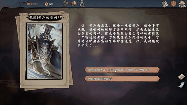 当你某项性格成长到一定值时,将遇到不同阶段的性格考验,你可选择放弃考验或接受考验,若能通过考验你将得到前所未有的成长。