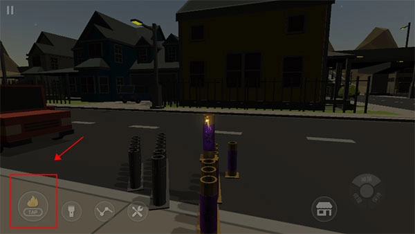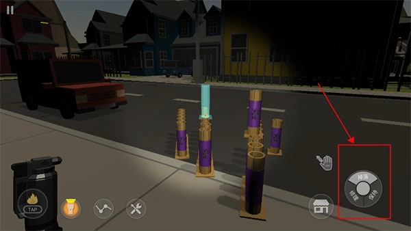 10、摆放妥当后,我们滑动屏幕对准烟花,接着点击旁边的打火机就能引燃引线,只需点击一次,其他烟花便会一同被点燃。