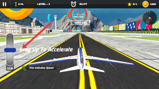2、需要将左侧的加速条向上拖动,根据系统提示“Drag Up To Accelerate”来提升飞机速度,以此为起飞积蓄力量。