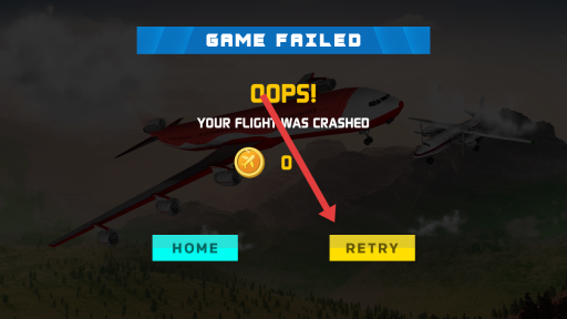 3、要是在起飞前遇到了其他障碍物,挑战就会失败,此时点击界面右侧的RETRY按钮,就能重新开启飞行挑战的尝试。
