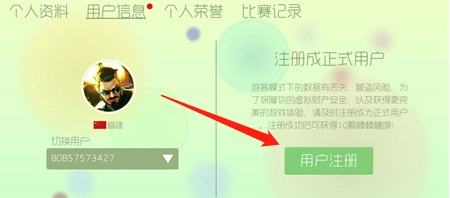 进入游戏后,从主界面进入个人中心,接着进入用户信息页面。若你是游客登录状态,右侧会显示“用户注册”选项,绑定手机即可完成账号注册。