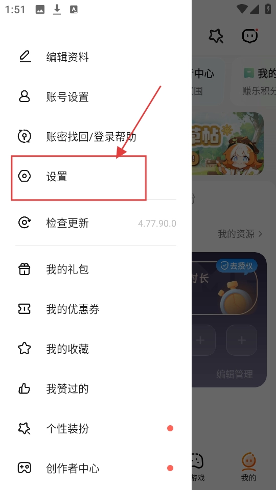 1、若要管理游戏存档相关内容,可在侧边栏菜单中点击【设置】选项,即可进入设置页面。