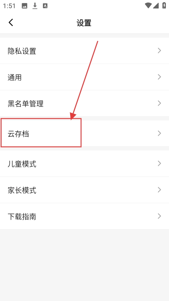 2、进入设置页面后,要是想使用云存档功能,点击【云存档】选项,即可进入云存档游戏合集页面。