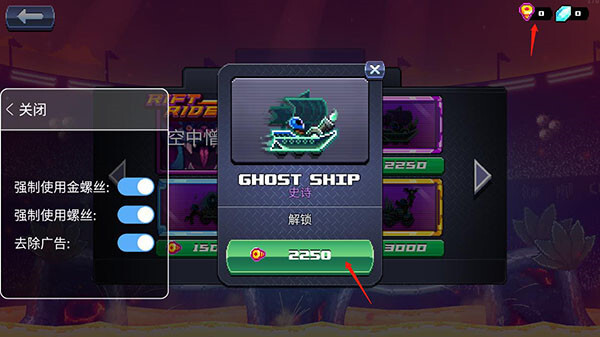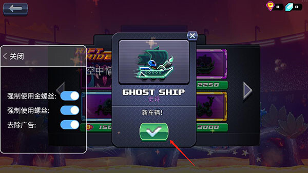 3、要是你想购买高级赛车却没有金螺丝,只要开启了,就算金螺丝数量不足也能完成购买。