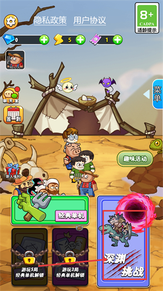 1、进入游戏后先点击【经典单机】开启基础玩法,后续完成对应局数可解锁更多模式如【深渊挑战】。