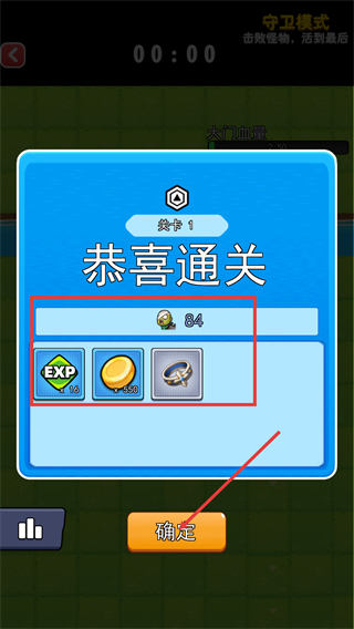 4、通关【关卡1】后可获得【EXP-x16】【金币-x550】等奖励,点击【确定】领取并准备进入下一关。