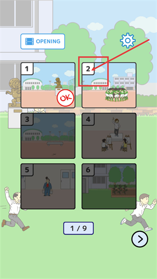 4、在【OPENING】界面,选择标有【2】且出现【OK】标识的分镜,推进关卡进程。