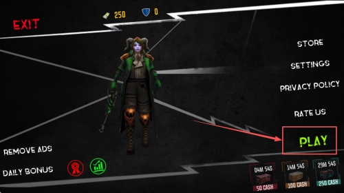 1、进入主菜单:启动游戏后,你会看到角色选择界面,点击“PLAY”按钮进入主菜单。