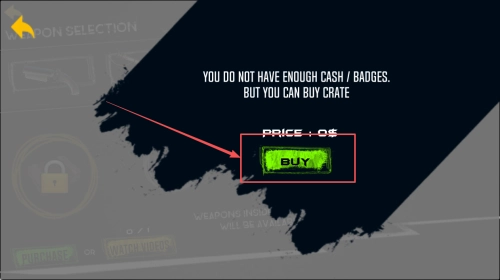 4、购买装备:如果提示你现金或徽章不足,点击“BUY”按钮购买装备箱以获取更多资源。