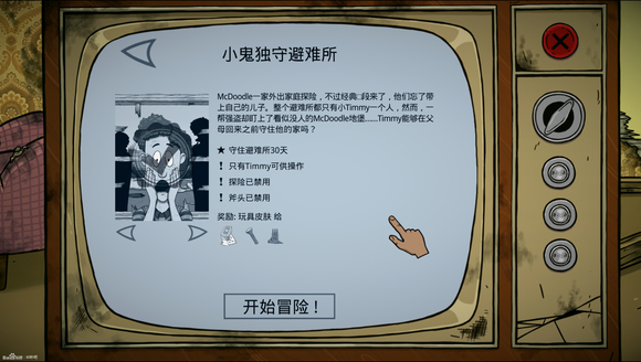 6、【小鬼独守避难所】、固定天数类,持续存活30天。由于事件顺序随机,请务必保管好对应道具!固定文本,没有任何剧情,只要熬过第29天,则游戏结束。