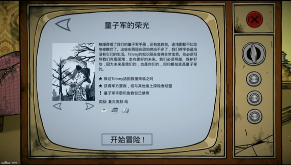 2、【童子军的荣光】、玩法重点、原版沙皇模式生存的基础上+儿子必须活着 禁用万能书+禁用急救包的高难度局。
