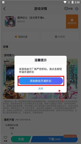 3、然后点击添加微信开通折扣即可。