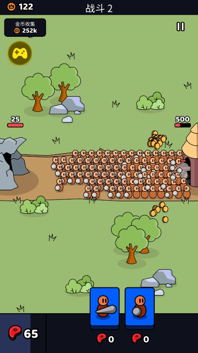 《我们是战士菜单最新版》这个版本中增加了最新的菜单功能,可以自由增加金币,而且召唤士兵也不会消耗资源,游戏设定在石器时代,需要派遣不同的战士在不同的时代作战,游戏要求玩家使用一定的策略进行战斗,并根据战场上的情况灵活适应,首先,你需要用食物吸引更多的士兵,在战场上,你可以点击派遣你的士兵,不同时代会有不同的战士,敌人也会改变,玩家需要跟上时代的变化,丰富的武器系统。