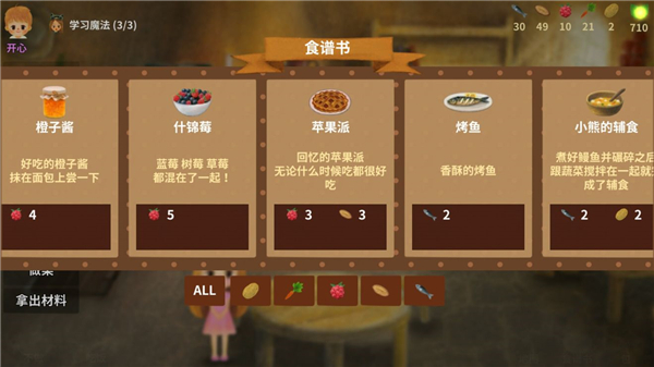 :场景和材料都用油画绘制,轻松收集各种材料,制作食物,具有非常治愈的游戏音乐和可爱的游戏角色图像。2、