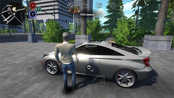 4、游戏正式开始后,玩家需靠近车辆才能上车驾驶,点击车门按钮即可完成上车操作。