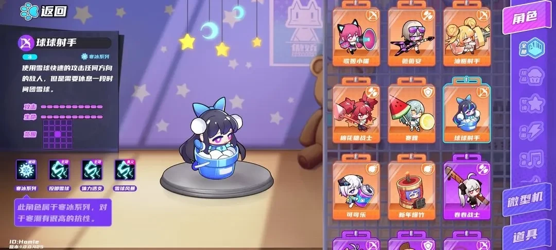 负责提供饮料的基础角色。不一定需要提升,但队伍里必须得有一个,实用性很强。三振效果能击退并清理掉部分残血敌人,五振后能提供两份饮料,性价比非常高。