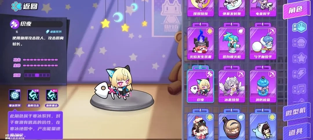 它的射程不算近,攻击力也不低,作为远程战士角色,操作起来非常容易上手。大招能够清除周围一圈的微型机,这一点让它深受新手玩家的喜爱。而且角色本身是紫色品质,用来堆共振也很方便。