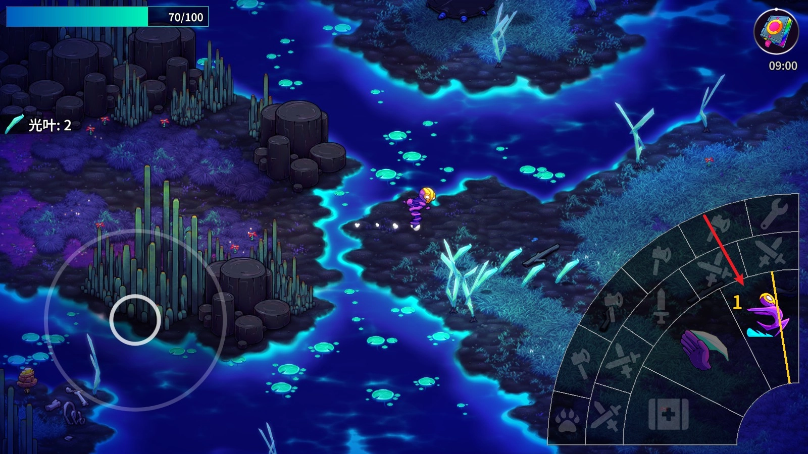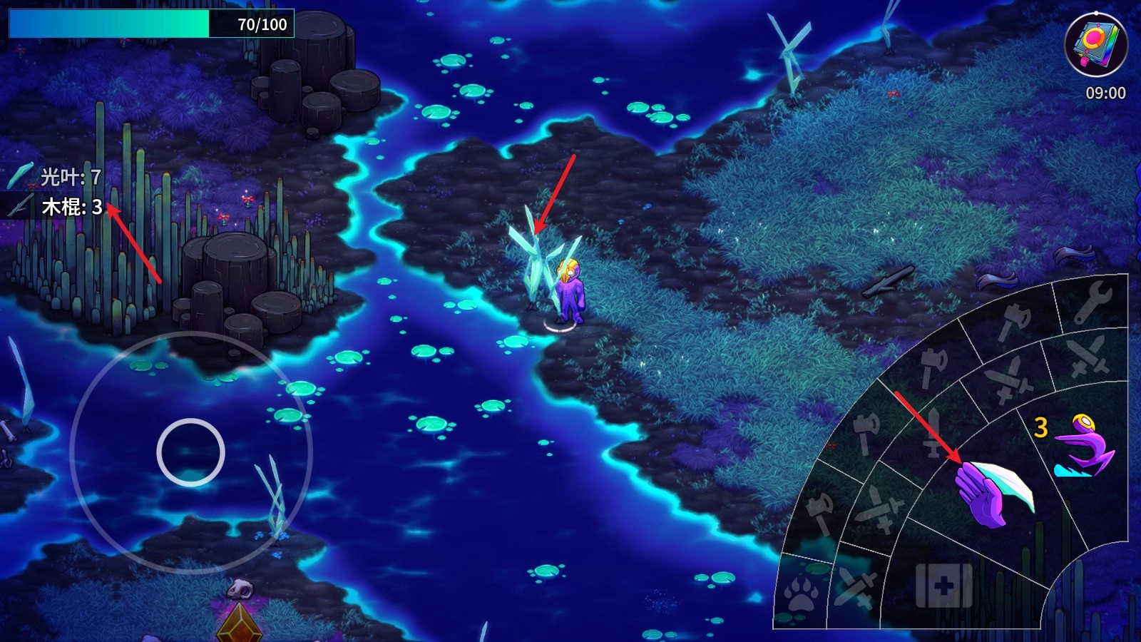 2、游戏中通过左侧的摇杆来控制人物进行移动。