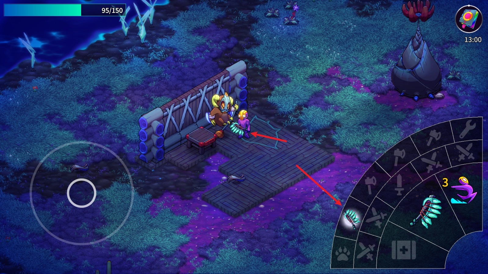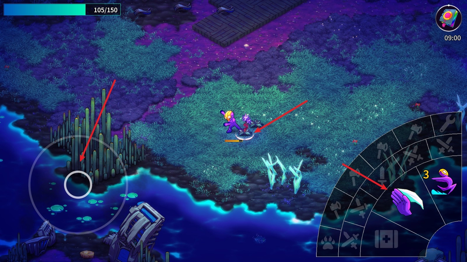 1、进入游戏后,用左侧摇杆操控角色移动,当靠近物品时攻击键会自动亮起,点击该键就能发起攻击。