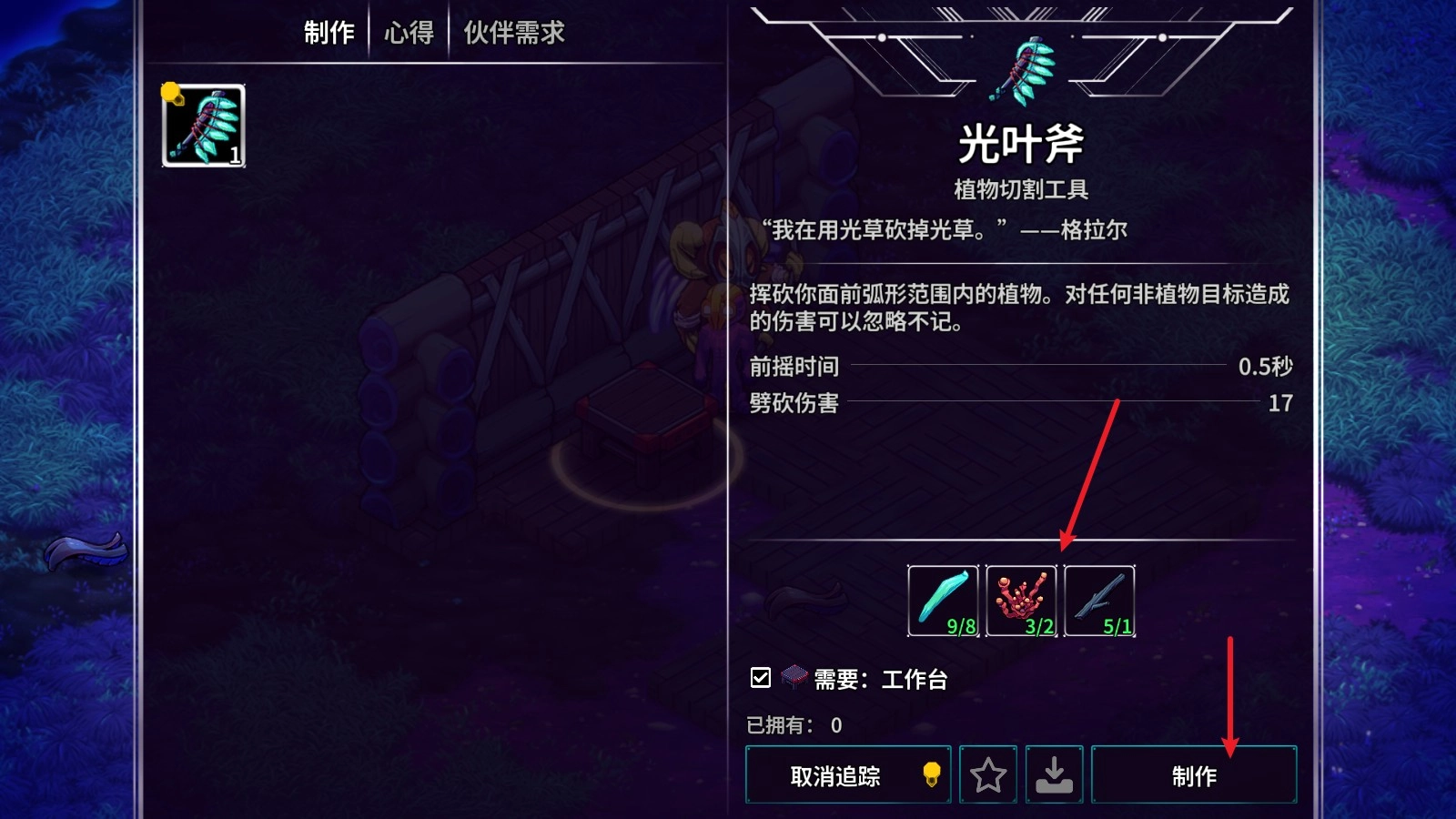 5、制作武器或者道具需要指定的一些材料,然后点击制作即可。