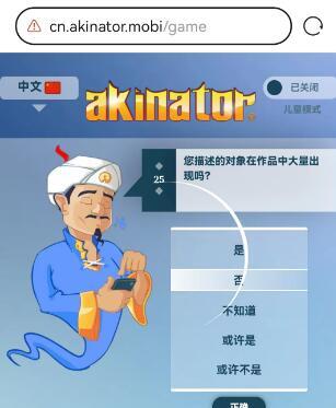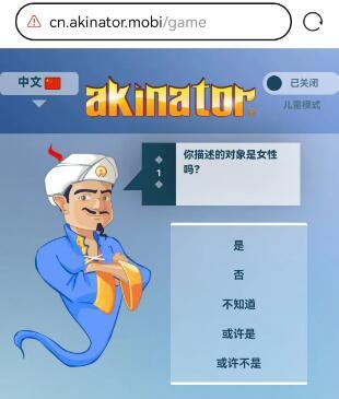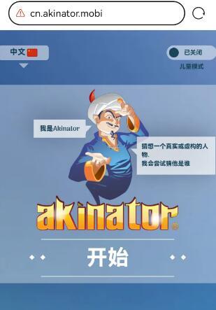 网络天才akinator的第二个网址是:https://cn.akinator.mobi/