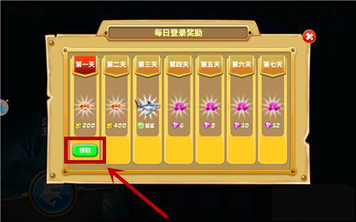 2、我们进入后,首先可能会有一个操作指引,完成操作指引后进入饥饿鲨世界游戏,首先要进行的是签到。