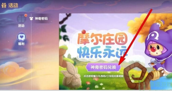 2、点击左侧的福利图标,进入页面后就能看到一个神奇密码。