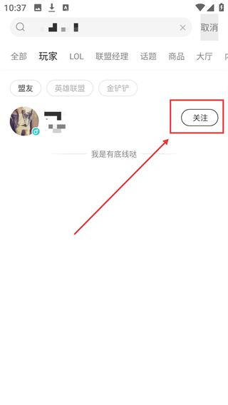 4、在搜索结果的玩家分类板块中,找到想要关注的目标用户后,点击其对应的【关注】按钮,即可成功关注该用户。