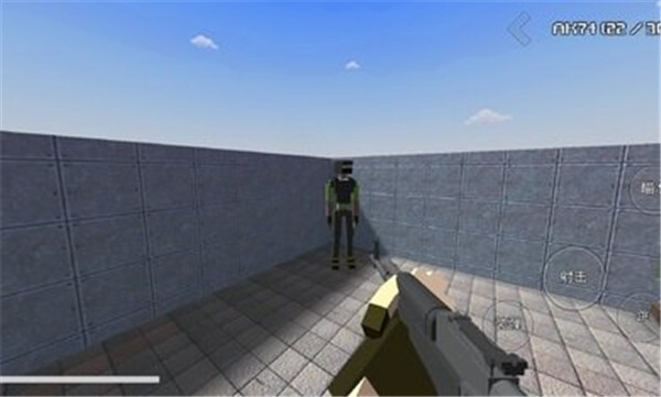 进入游戏界面后,我们能看到装弹、射击、瞄准、跳跃等操作选项,玩家可通过移动来观察周围环境。