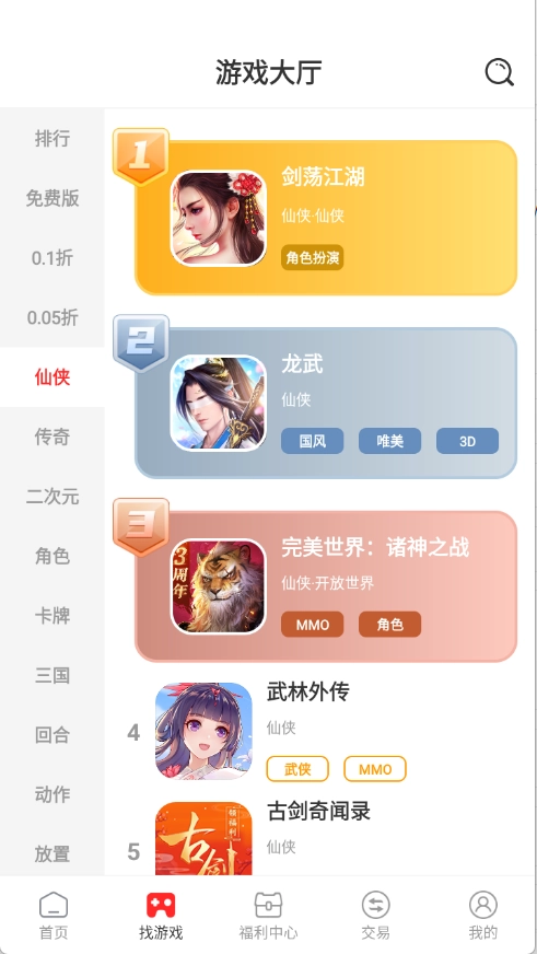 3、排行榜根据当前热度将游戏进行排序。