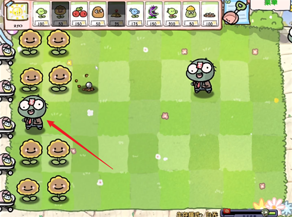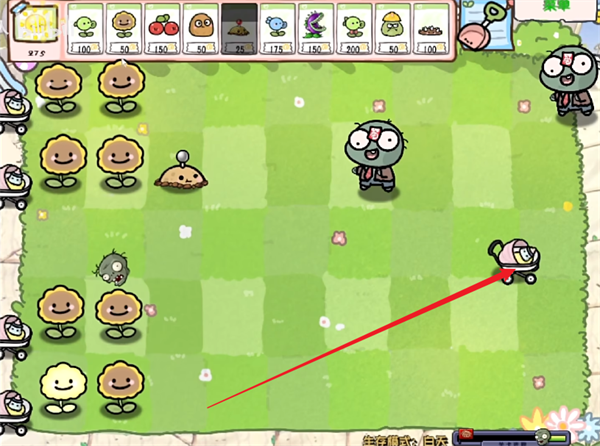 2、当僵尸把某一条路上的植物全部吃掉后,走到这条路的尽头时,就会触发该道路对应的婴儿车。
