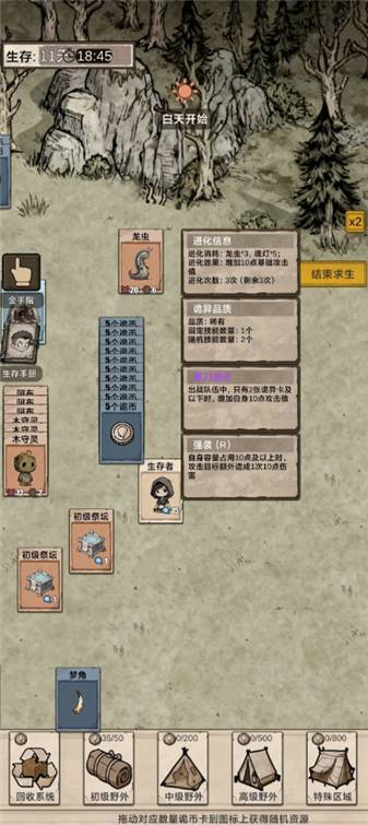 3.昼夜节奏把控:白天结束前召回生存者,整理3组诡币+2组材料,确定出战阵容。夜晚血量低于30%时用诡水回血,缺输出时临时转化诡水提升太守灵生存,拖至龙虫技能CD冷却。