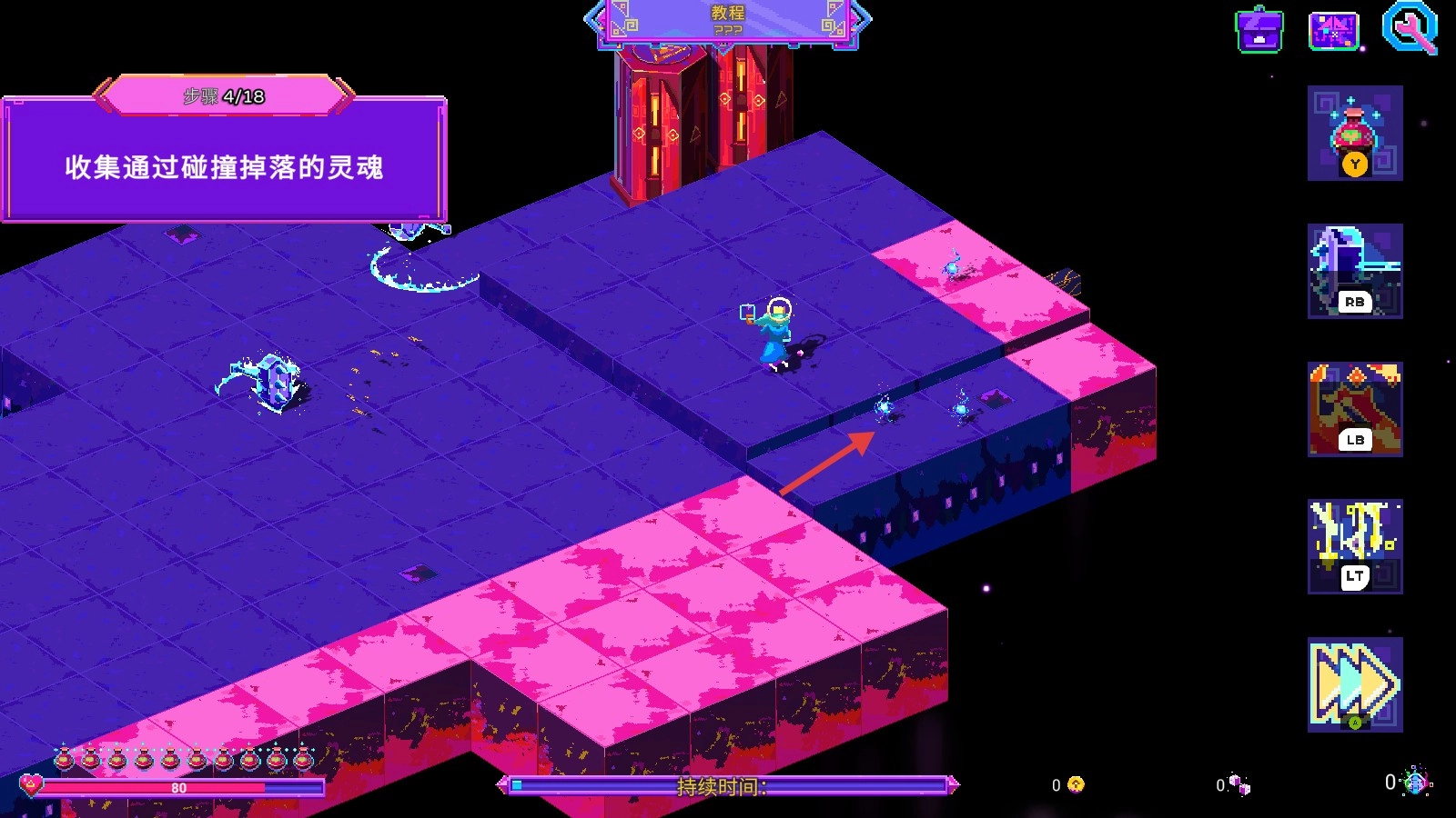 在移动过程中,注意那些因碰撞而掉落的灵魂,我们需要收集它们,为接下来的冒险储备资源。