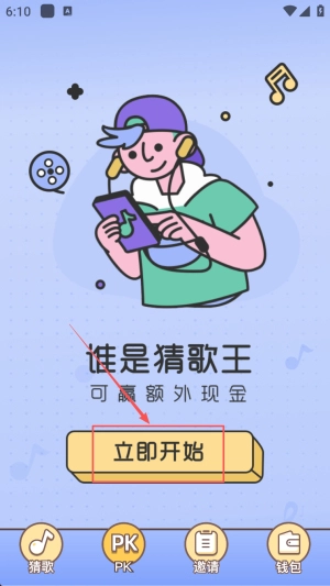 包含丰富流行曲目的音乐竞猜游戏。玩家需根据播放的歌曲片段快速猜出歌名,并可与他人进行实时对战,争夺最强称号。游戏提供多样挑战模式与海量关卡,答题玩法轻松有趣,适合喜爱音乐与社交竞技的玩家体验。1、进入游戏:首先打开游戏主界面,点击“立即开始”进入猜歌对战。