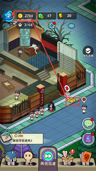 4、道具制作机制别具一格,猛鬼必须依靠专属道具才能进入鬼屋,玩家可亲手研发不同等级的鬼怪道具,道具品质与猛鬼的惊吓效果直接挂钩,强化了养成与玩法的联动性。