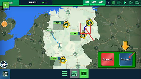 3、规划路线后点击【Accept】按钮确认,即可启用该运输路线,提升游戏内的运营效率。